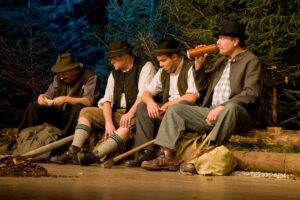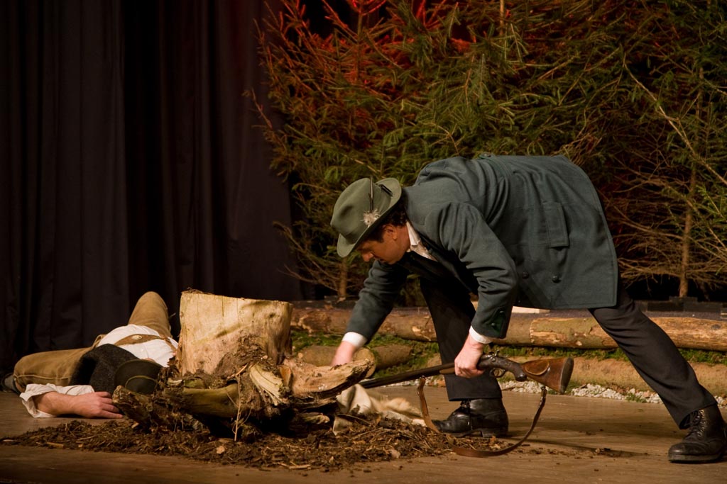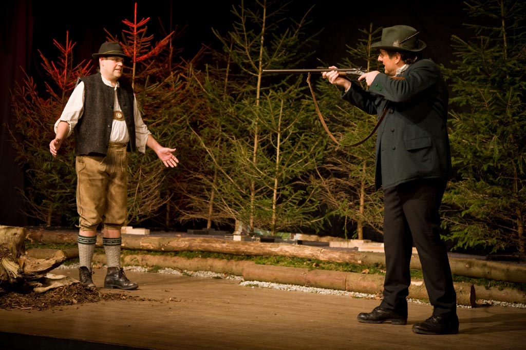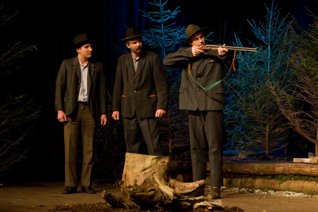 Der Jennerwein ist ein typisches WildererstΓΌck mit JΓ€gern, WildschΓΌtzen, Holzknechten und Haberern. Im Mittelpunkt steht die Feindschaft zwischen Georg Jennerwein und dem JΓ€ger Federl. Jennerwein ist eine Figur, der scheinbar mΓΌhelos alles zufΓ€llt, der den Weg seiner Γberzeugungen geht und Respekt und Anerkennung erhΓ€lt. Sein GegenΓΌber muss sich alle diese Dinge hart erarbeiten und hat dennoch kaum den ersehnten Erfolg. Sie lieben beide dasselbe MΓ€dchen, Liesel. Sie ist ihrem Georg von Herzen zugetan, aber eines Tages erwischt Federl ihren Vater, den Seehuberbauern, beim Wildern und erpresst sie damit.